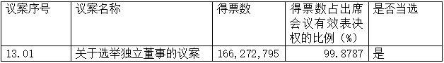 13、关于选举独立董事的议案