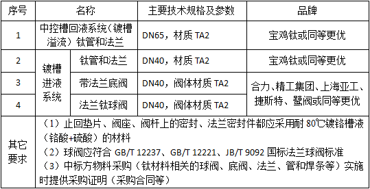 自动镀铬生产线现有镀槽-中控槽镀液循环系统塑料材质管道(管道、接头与阀体)使用到一定年限老化,其中的溢流管路、回液管路及阀件将更新为钛材料。