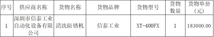 一号娱乐集团清洗防锈机采购与安装中标公告