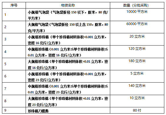 一号娱乐集团采购气泡袋、珍珠棉招标公告