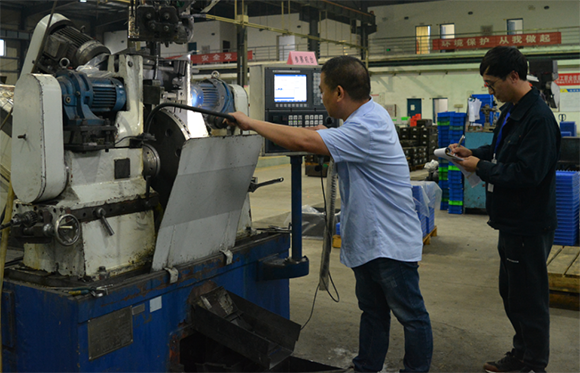 ▲一号娱乐集团永轴公司党委书记、董事长吴岳彬陪同三明市总工会、永安市总工会、三明埔岭汽车工业园区管委会领导参观永轴公司厂区并详细介绍数控磨加工及智能检测连线设备情况