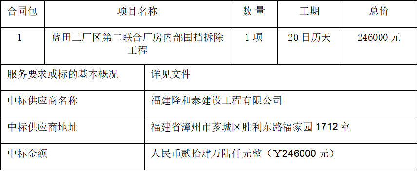 1、项目名称:蓝田三厂区第二联合厂房内部围挡拆除工程
