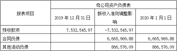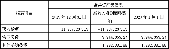 根据新收入准则及相关衔接规定,本公司自2020年1月1日起将原计入“预收款项”调整至“合同负债”及“其他流动负债”列报;其中,将原“预收款项”中涉及的增值税额调整至“其他流动负债”列报,其余不含税金额调整至“合同负债”列报。