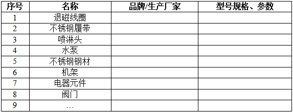 *设备退磁部分为线圈式退磁;采用不锈钢网带式传输链条,并配有喷淋装置配合网带的传输对零件进行喷淋清洗。设备总功率:≤30KW。