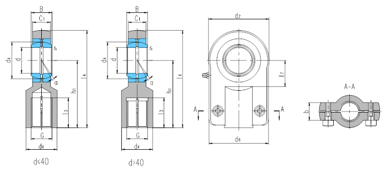 产品特点:带锁口杆端关节轴承由杆端体和向心关节轴承GE…ES组装而成,杆端体材料是碳钢,杆端体的内螺纹带有锁口,配有螺钉紧固;可通过油杯润滑。
