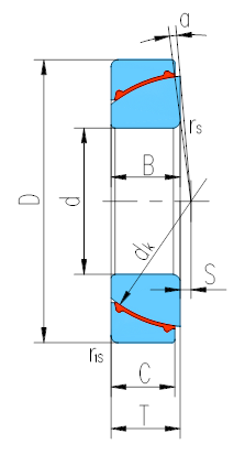 d | D | B | C | T | dk | S | rs,r1s min | α˚ ≈ | 动载荷 Dynamic | 静载荷 Static | ||