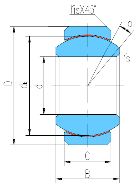产品特点:外圈材料为碳钢,球面粘贴PTFE编织物,挤压成形,内圈材料为轴承钢,淬火,球面镀硬铬。