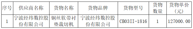 一号娱乐集团铜丝软带衬垫裁切机采购与安装中标公告