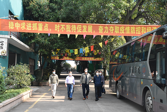 公司党委副书记康安伟介绍了公司防疫抗疫工作所取得的成绩,并陪同调研组一行深入车间了解生产情况。