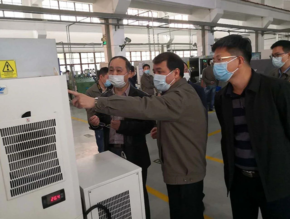 王卫明一行深入公司成品二车间和产品展示厅并举行座谈会了解情况。曾凡沛向王卫明一行介绍了公司产品及运用、复工复产及疫情防控应对措施、研制医用口罩生产线等情况。王卫明对公司为疫情防控做出的积极贡献表示肯定,同时指出,一要慎终如始加强疫情防控,切实把各项措施抓紧抓实抓细;二要精准有序推动复工复产,加快推进企业满产超产,把疫情造成的损失降到最低限度;三要在科技攻关上持续发力,加快进程,为实现国家产业转型升级和高质量发展做出应有的贡献。