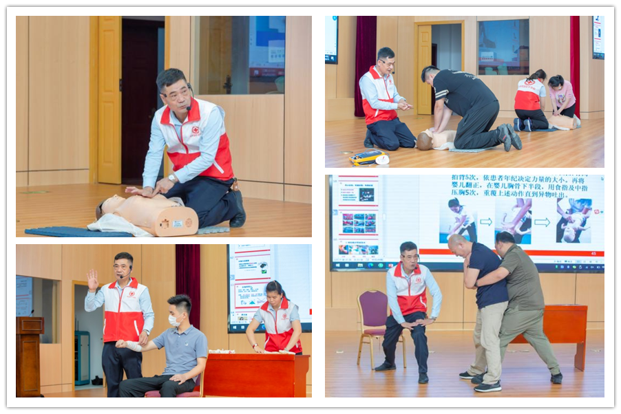 为向员工普及急救知识,提升急救技能,根据《2022年“安全生产月”活动方案》,公司于6月15日上午在蓝田三厂区一号娱乐集团大礼堂组织开展了一场急救知识和技能培训。培训邀请龙文区红十字会陈元福老师主讲,一位助教协助开展培训。
